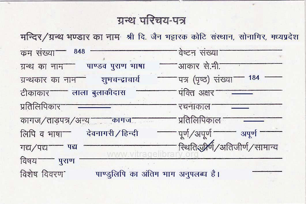 | Granth | : | Aadi Puran Bhasha Vachanika |