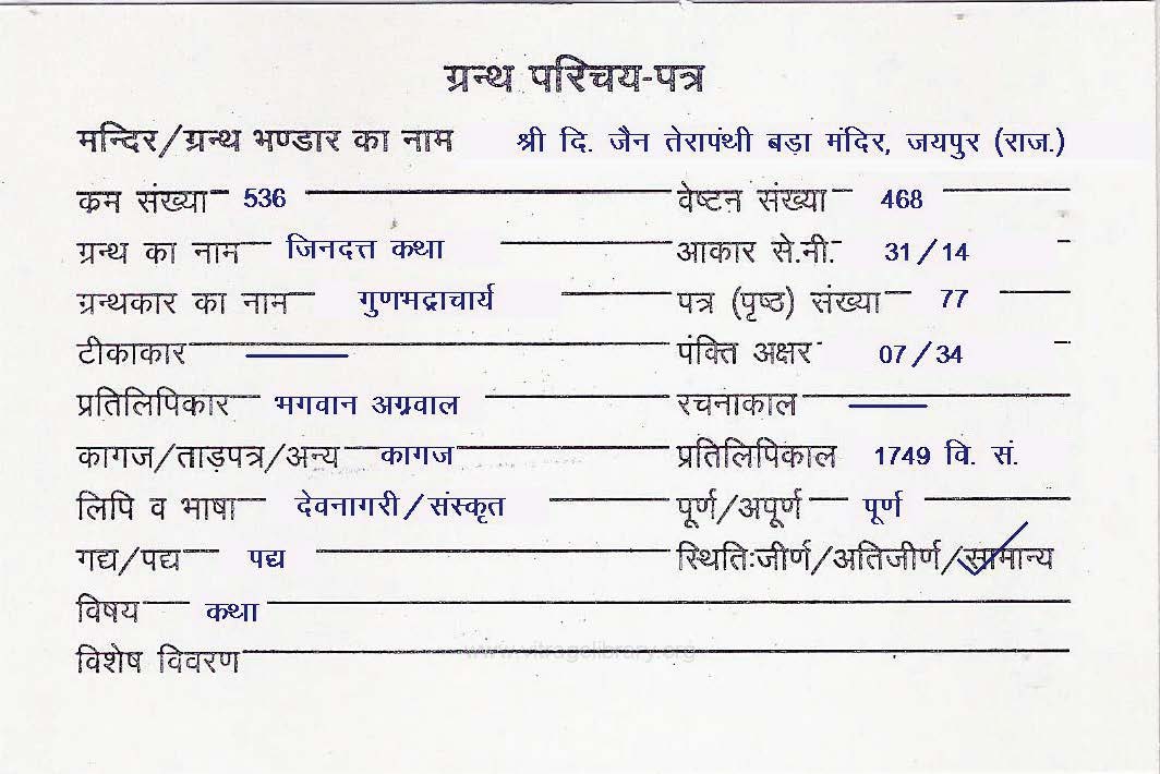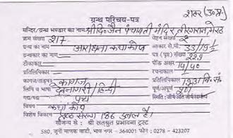 | Source | : | Shree Digambar Jain Panchayati Mandir, Teergaran, Meeruth (U.P.) |