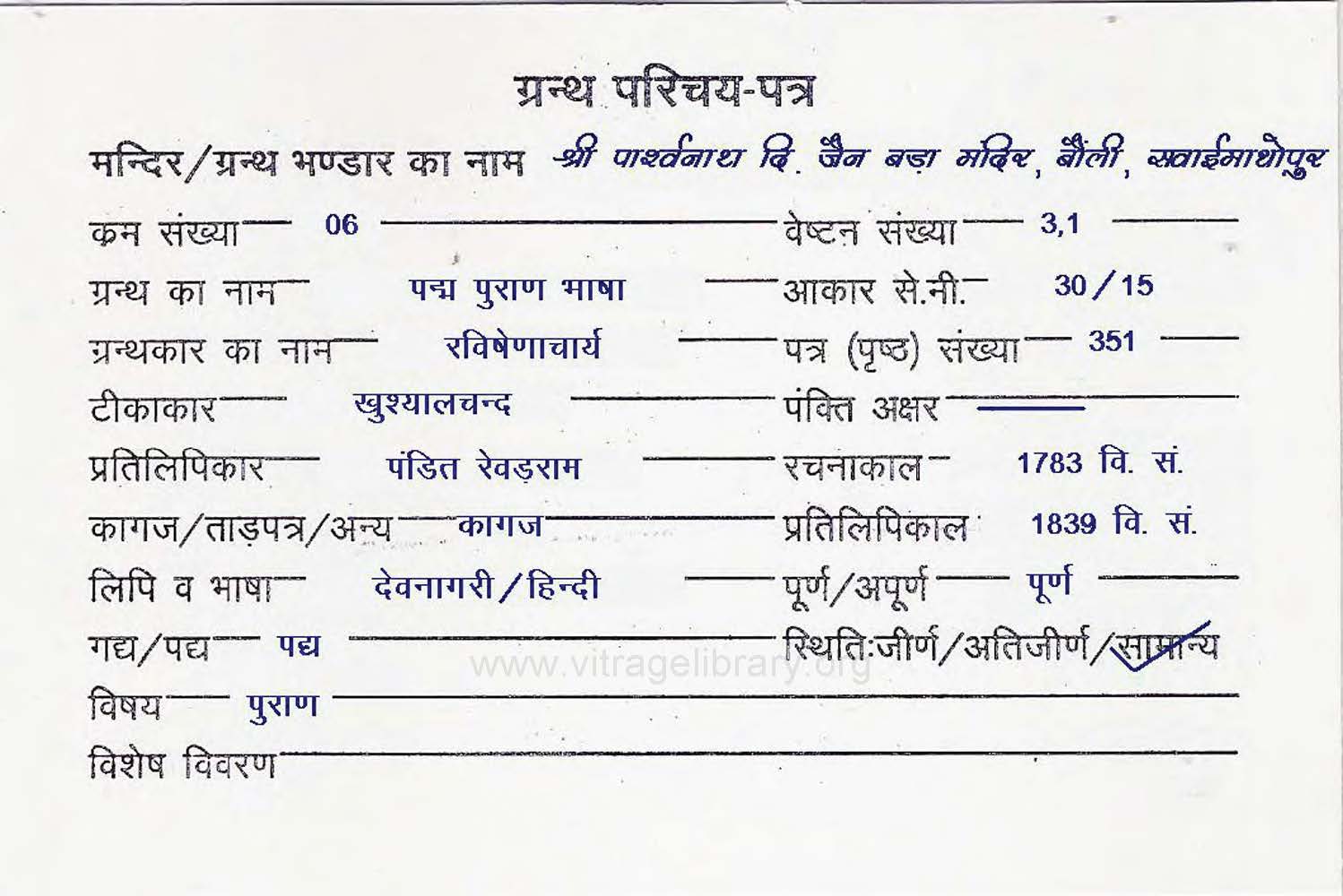 | Manuscript Year | : | 1931 Vi. Sa. |