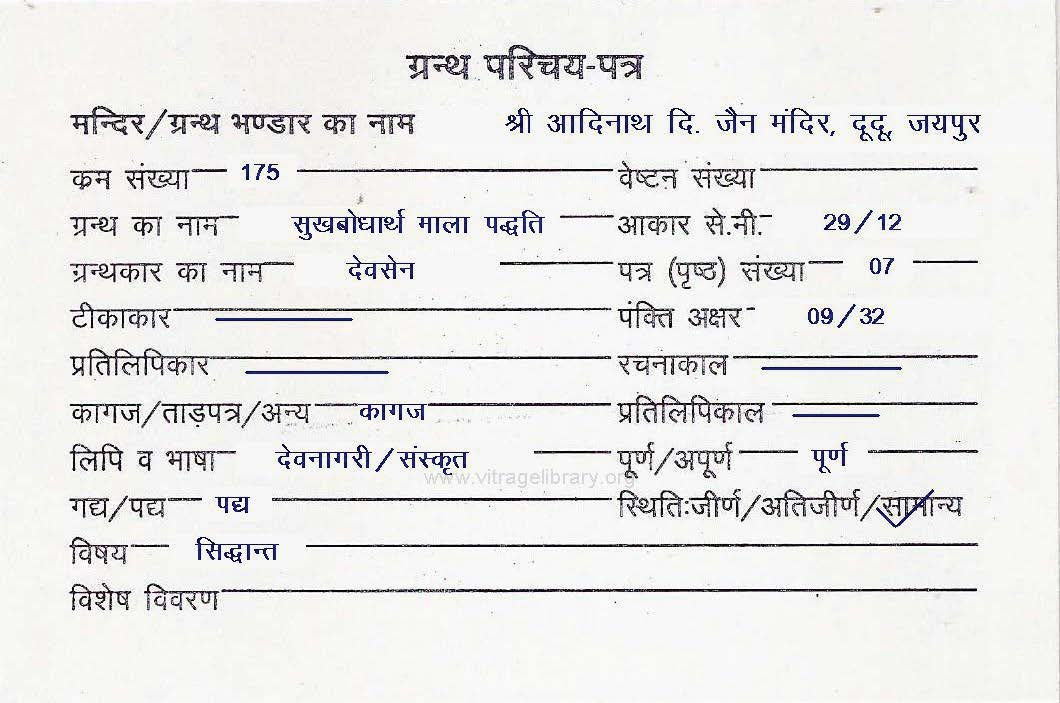 | Manuscript Year | : | 1869 Vi.Sa. |