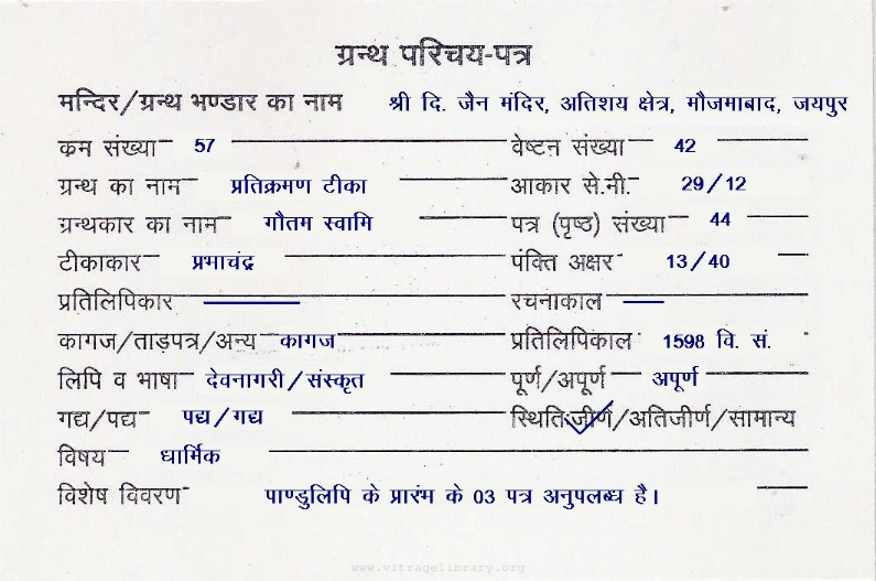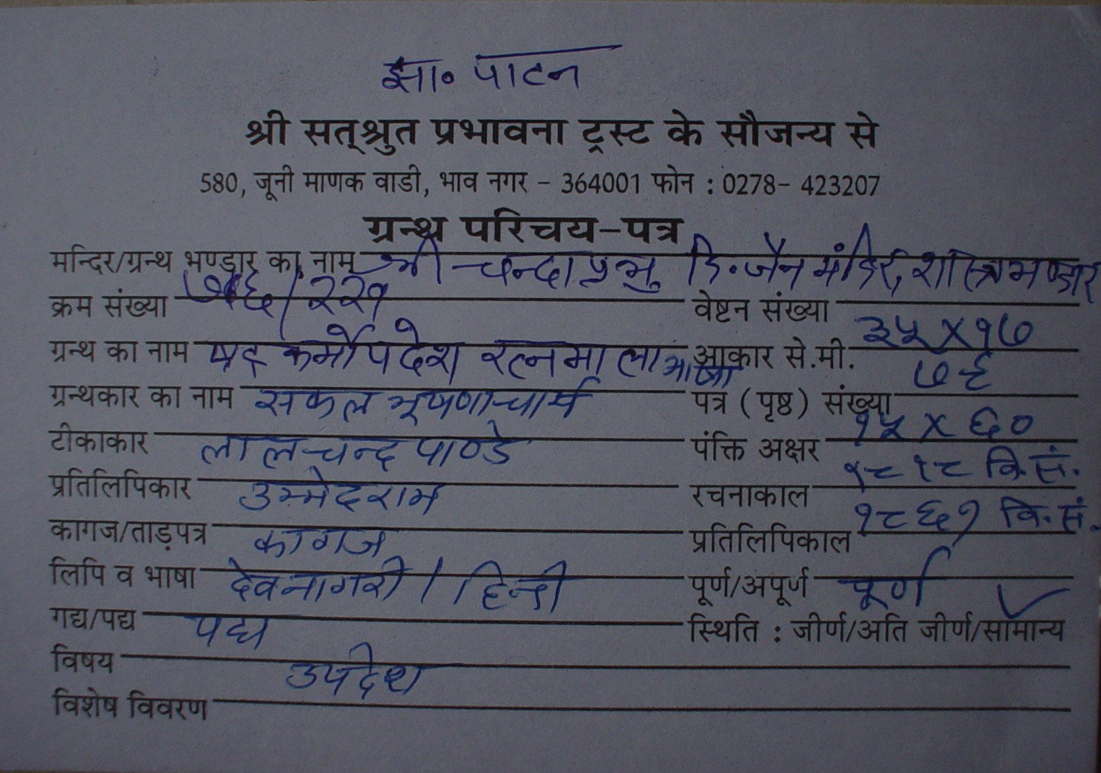 | Manuscripted By | : | Shree Jati Ratanchandra Ji |