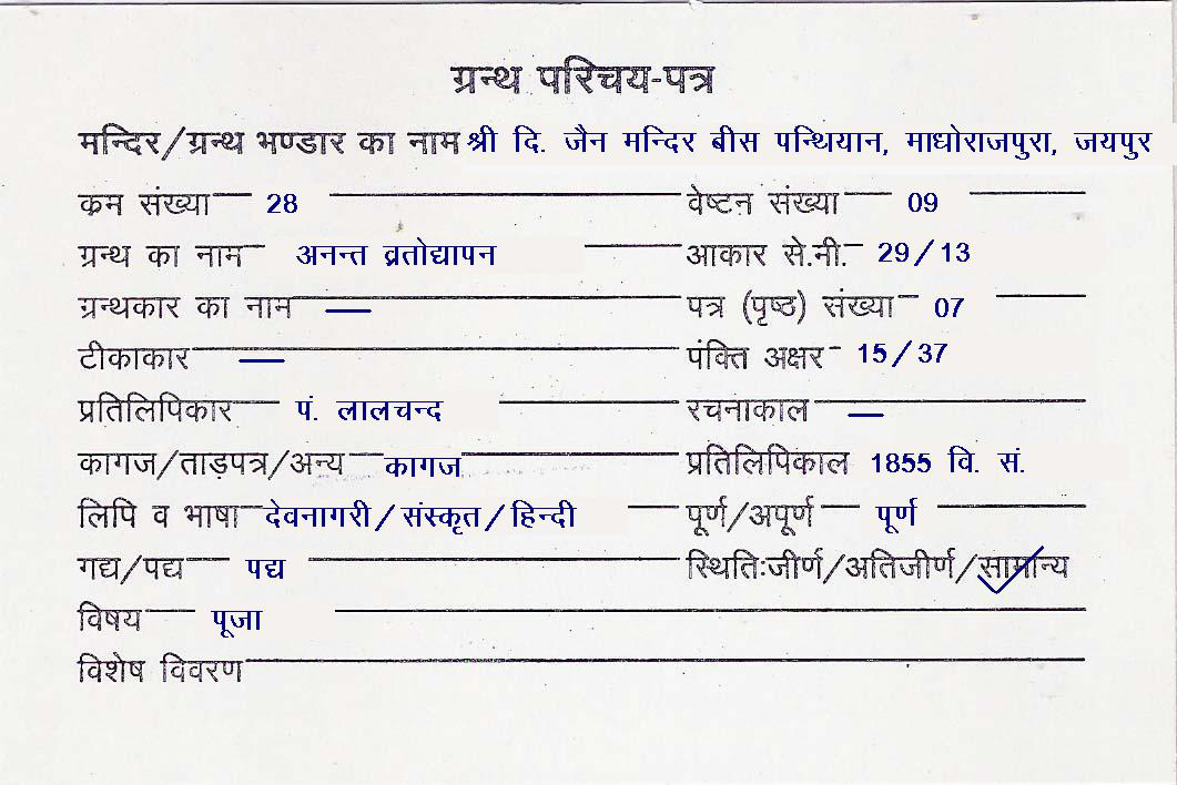 | Granth | : | Anant Vratodyapan |