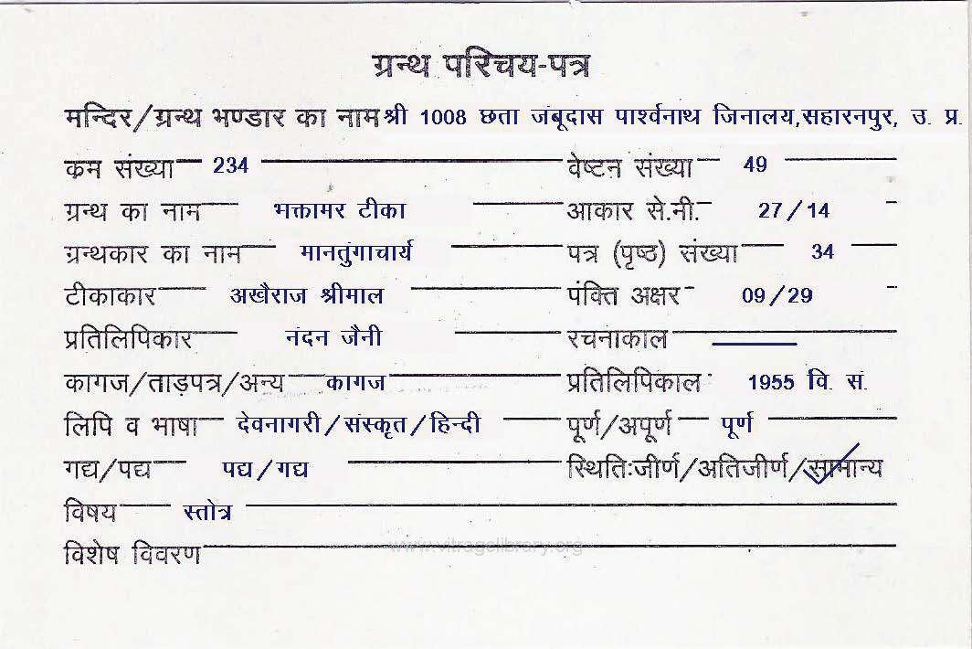 | Manuscripted By | : | Pandit Lalchand Ji |