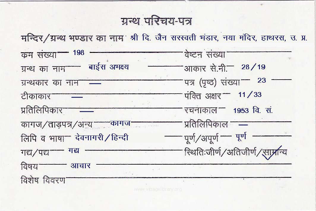 | Granth | : | Baiees Abhakshya |