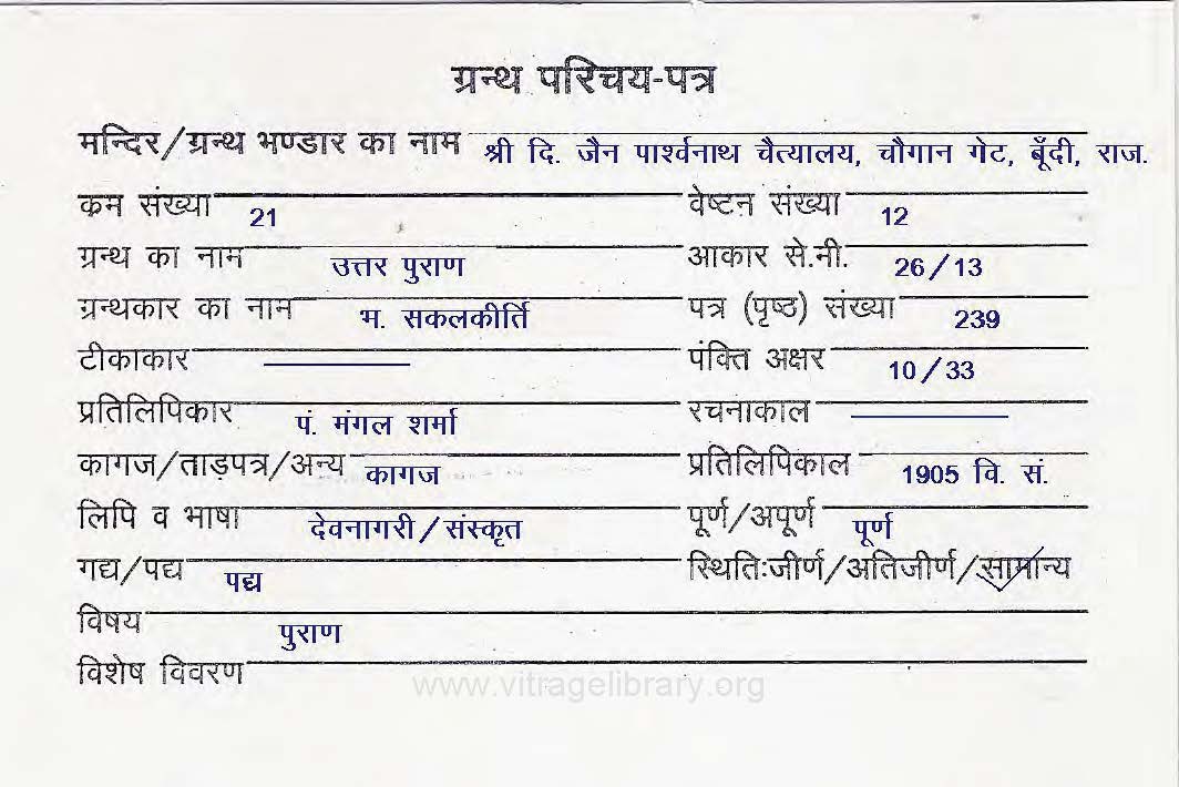 | Source | : | Shree Digambar Jain Parshwanath Chaityalay, Chaugaan Gate, Bundi, (Raj.) |