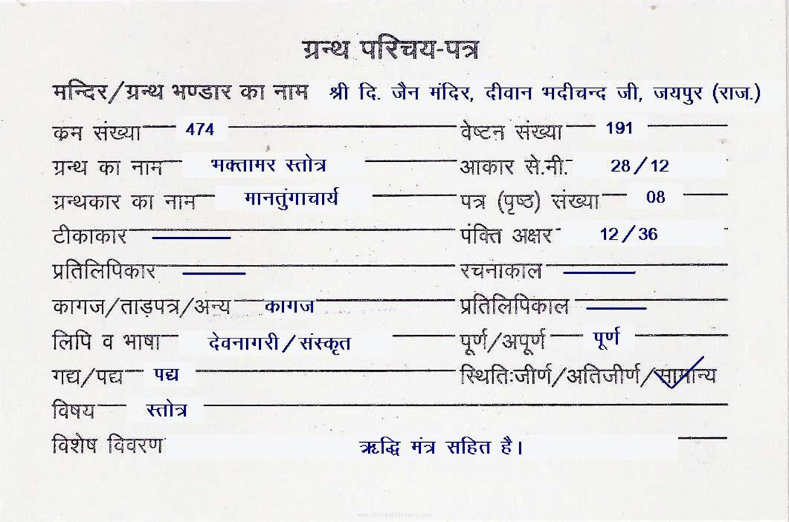 | Comments | : | ऋद्धि मंत्र सहित है। |