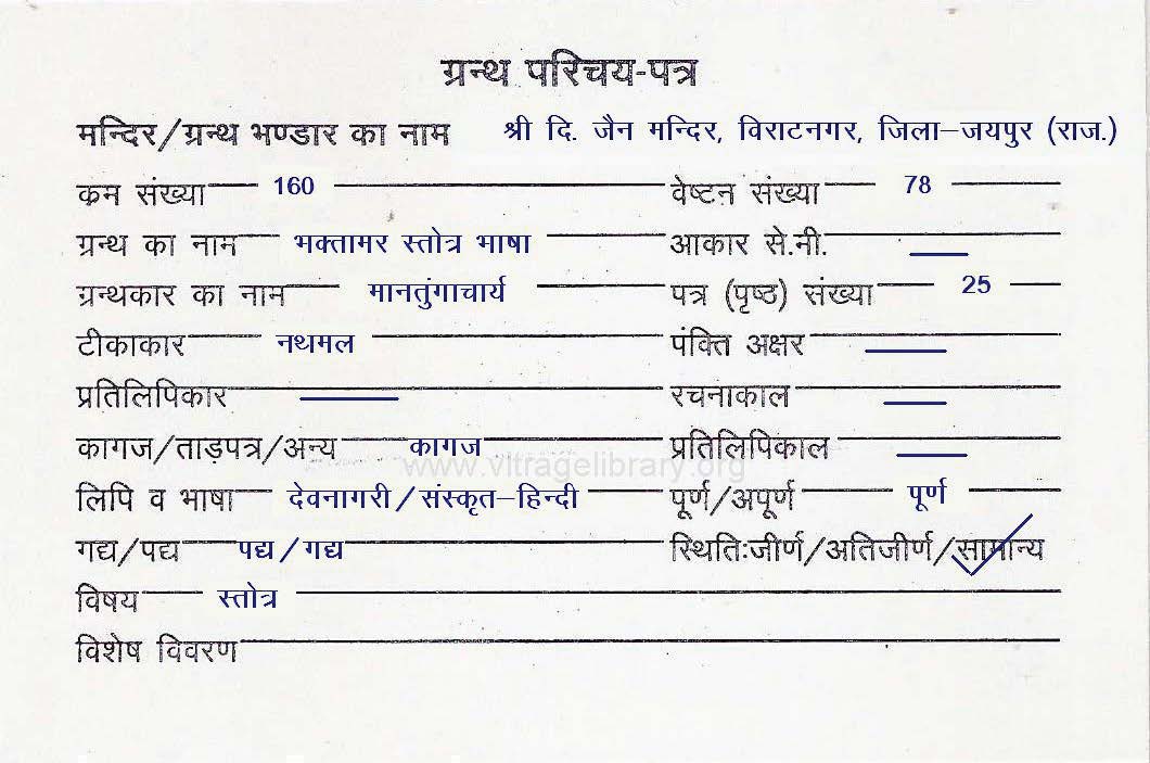 | Granth | : | Bhaktamar Stotra Bhasha |