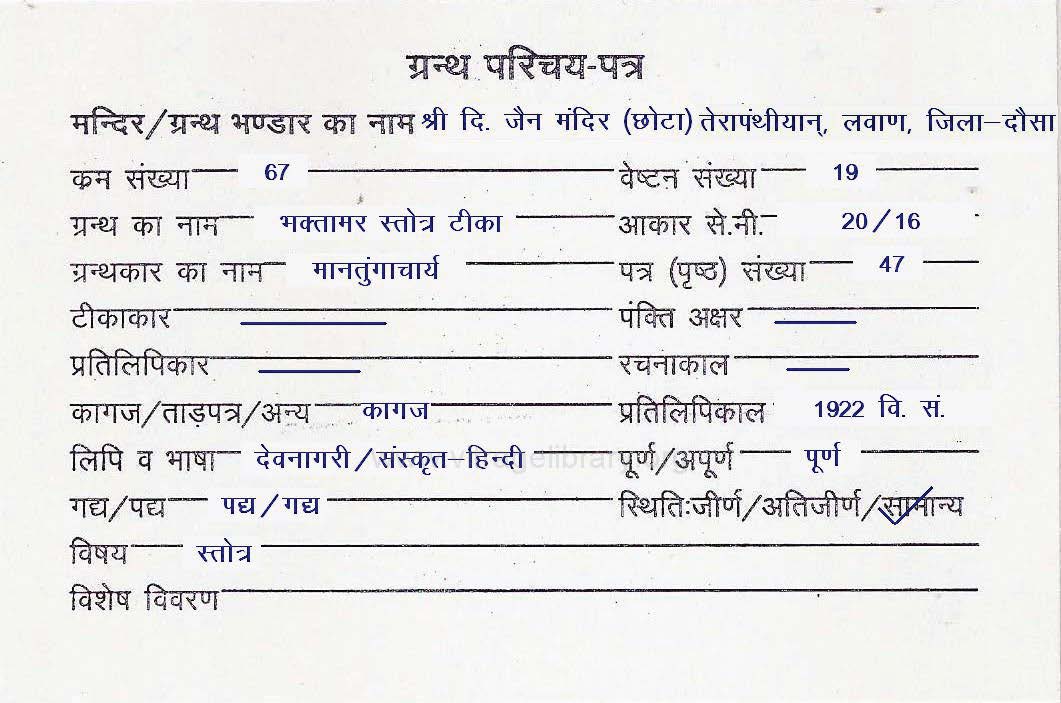 | Granth | : | Bhaktamar Stotra Teeka |