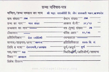 | Source | : | Shree Bhattarak Yashkirti Digambar Jain Saraswati Bhavan, Rishbhadev |