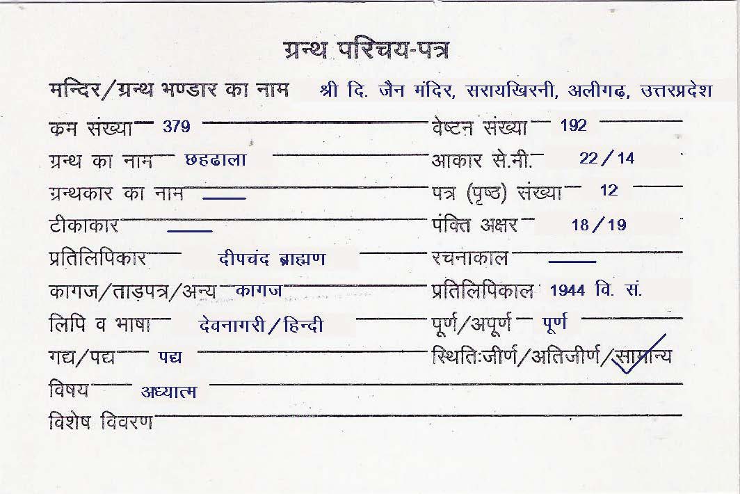 | Manuscripted By | : | Sh. Rajaram Jaiswal |