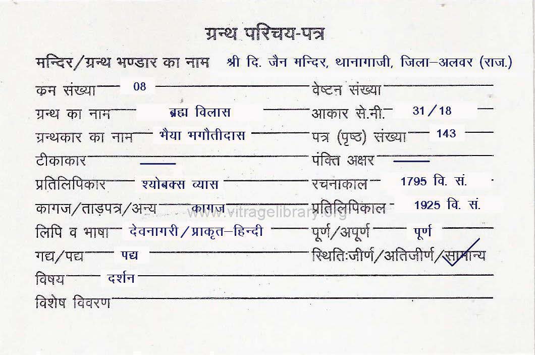 | Granth | : | Brahma Vilas |