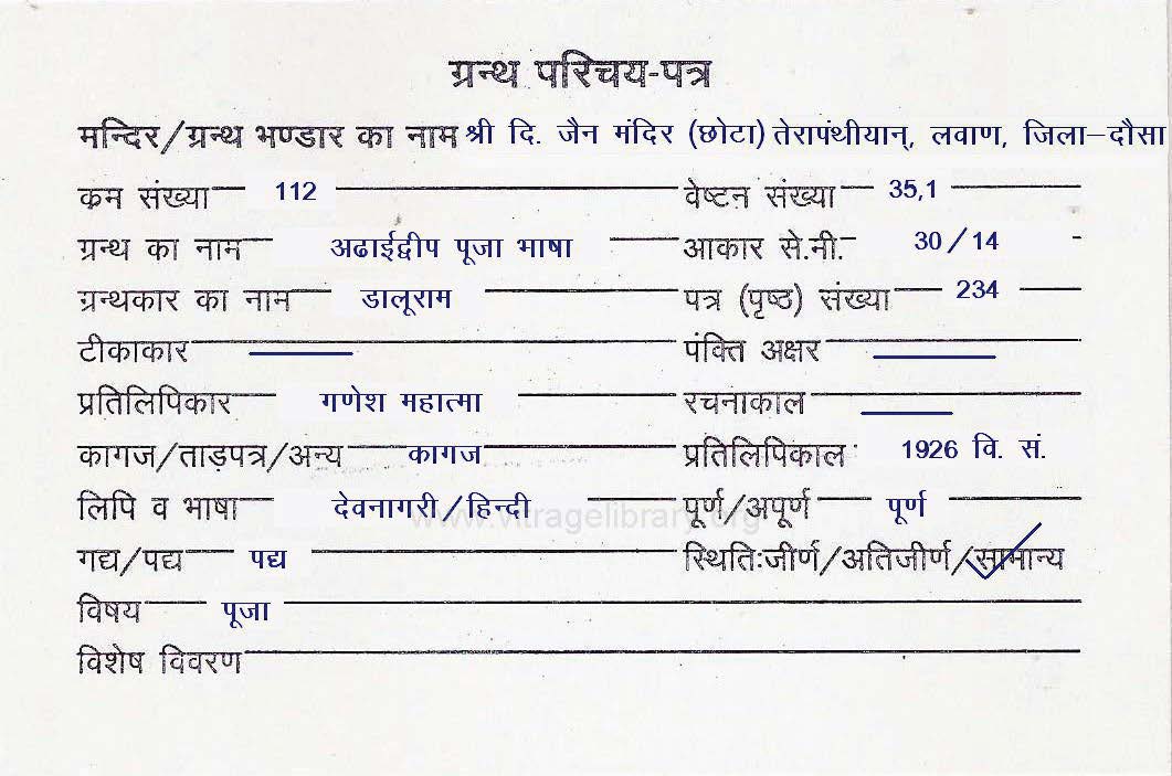 | Source | : | Shree Digambar Jain Mandir, Deewan Bhadichand Ji, Jaipur (Raj.) |