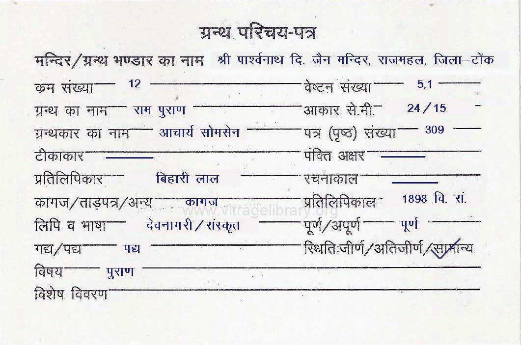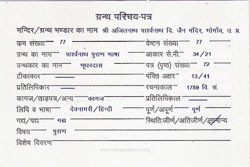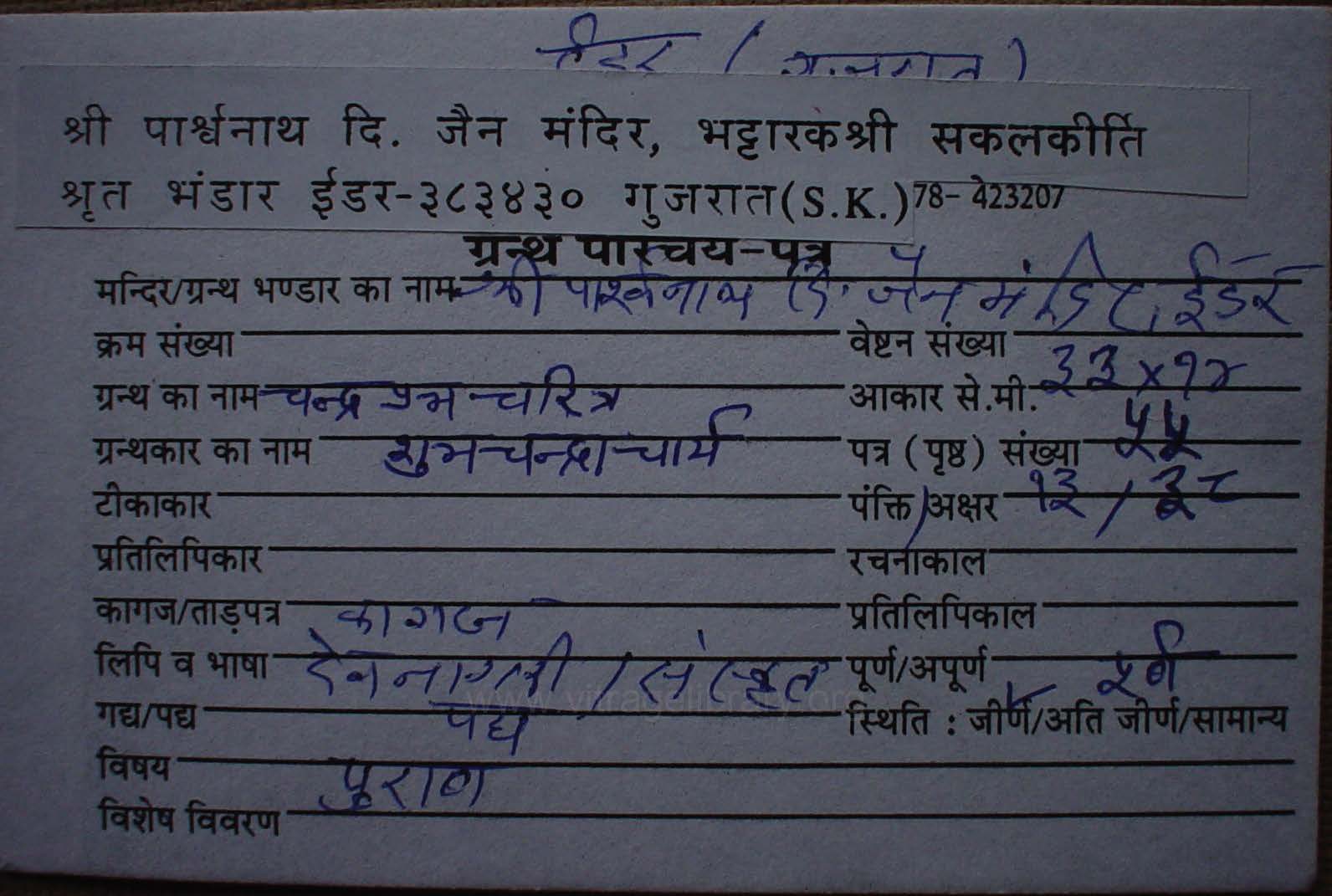 | Source | : | Shree Parshwanath Digambar Jain Mandir, Bhattarak Sakalkirti Shrut Bhandar, Idar (Guj.) |