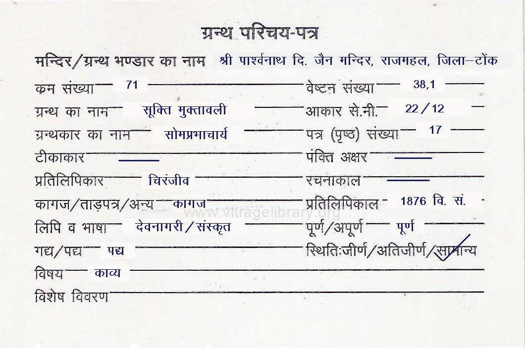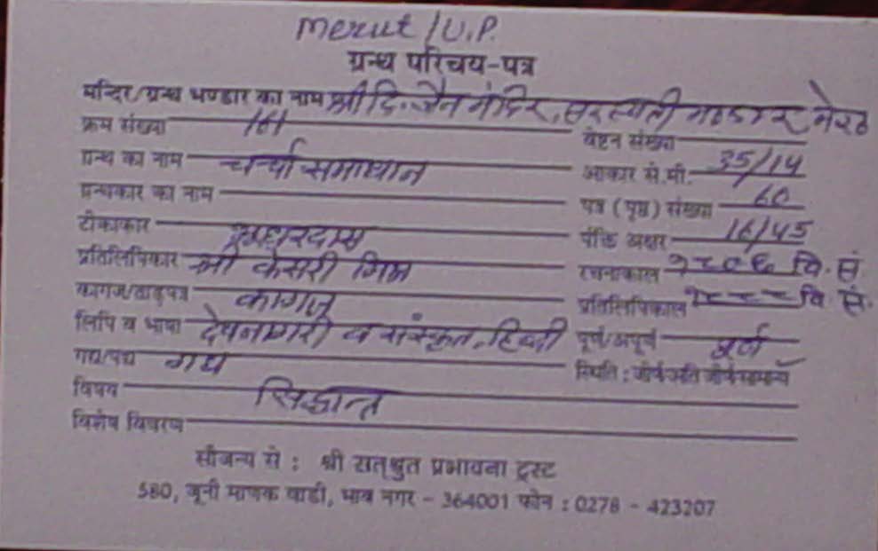 | Source | : | Shree Digambar Jain Mandir, Saraswati Bhandar, Meeruth (U.P.) |