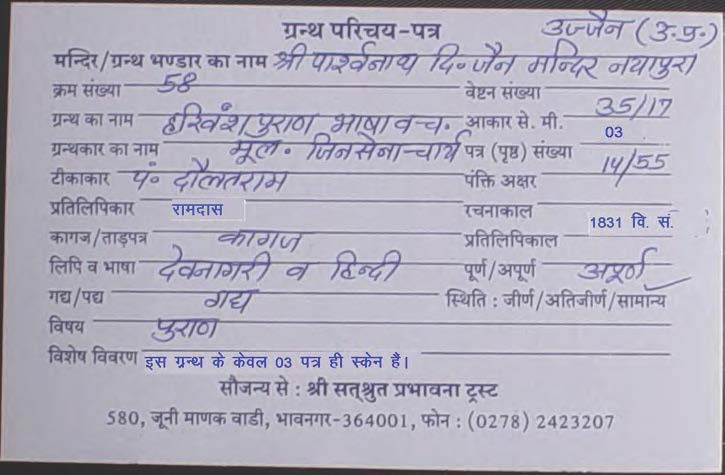 | Tikakar | : | Shree Thakurdas Ji & Indraraj Ji |