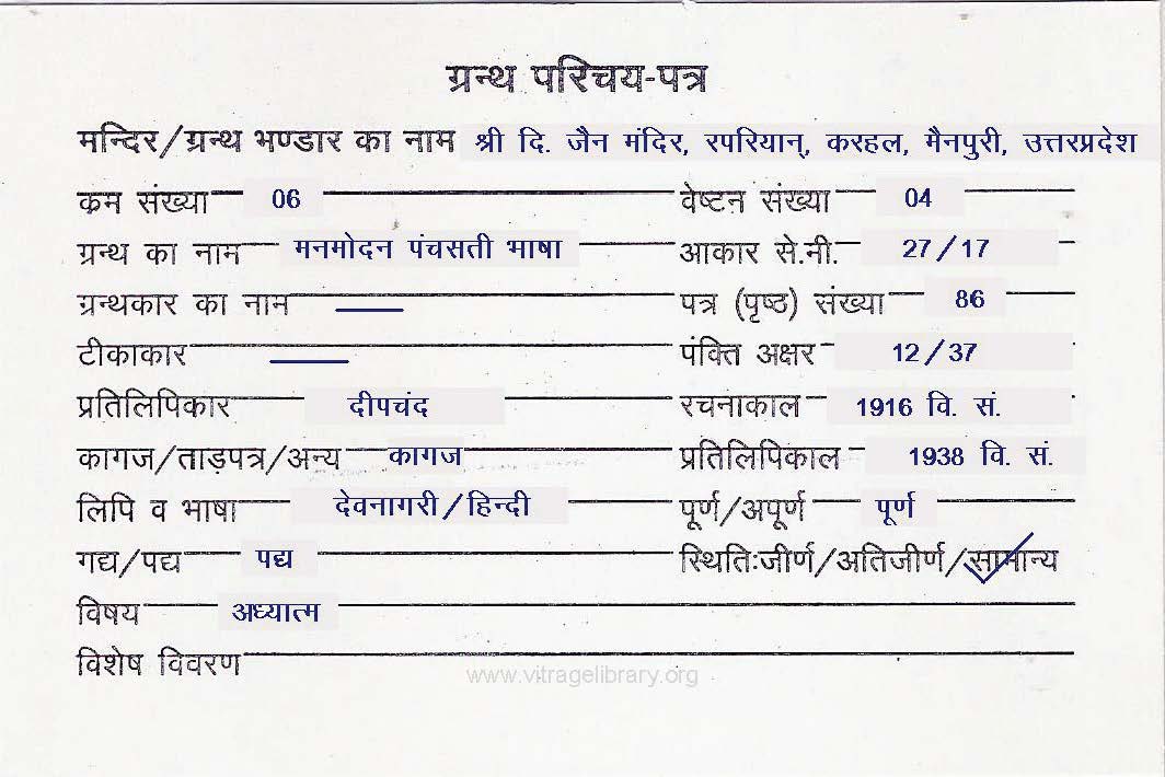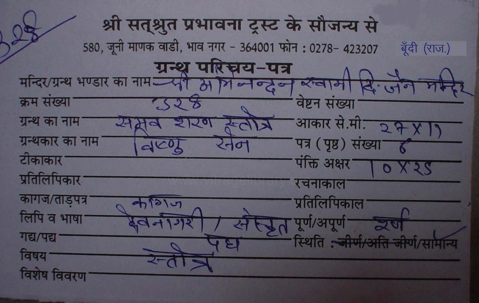 | Manuscripted By | : | Sh. Rishabhchand Kala |