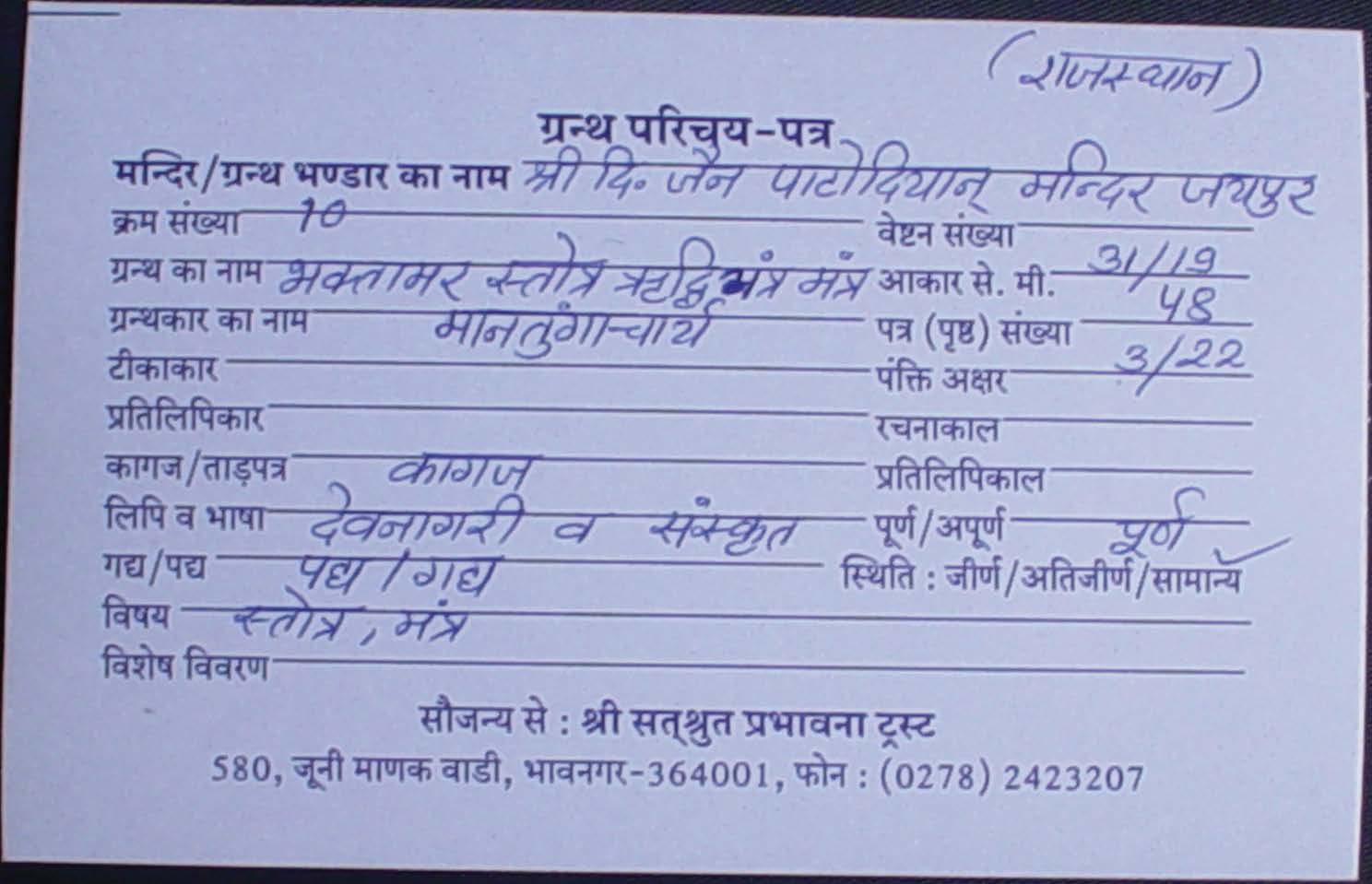 | Manuscripted By | : | Shree Ganesh Lal Pandya |