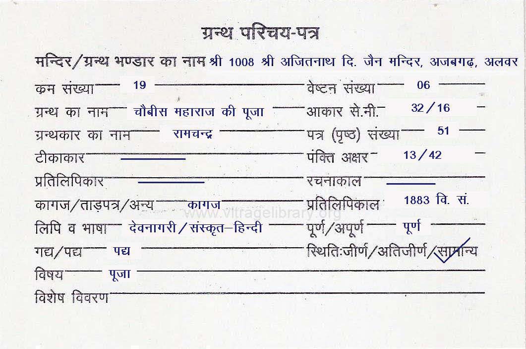 | Granth | : | Chaubees Maharaj Ki Puja |