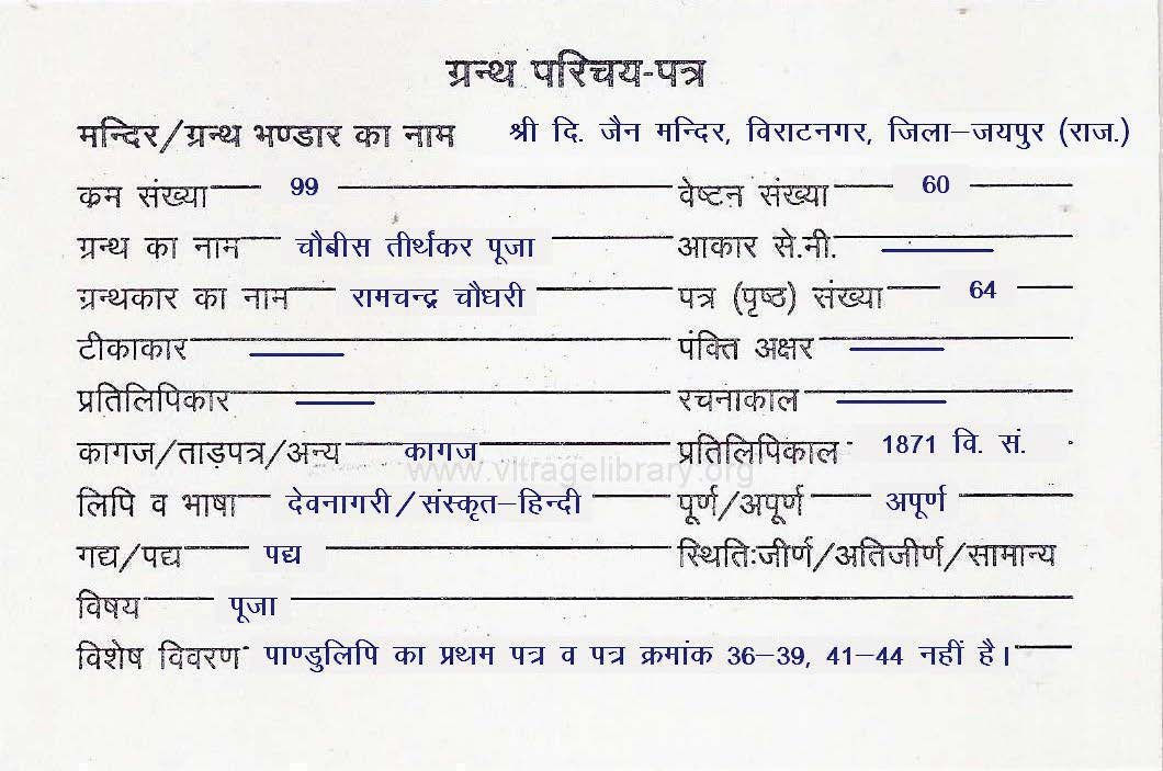 | Granth | : | Chaubees Teerthankar Puja |