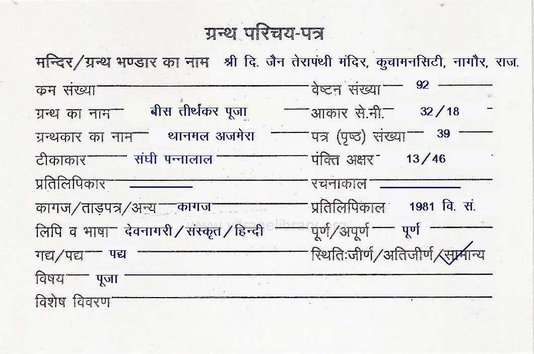 | Granth | : | Chaubees Tirthankar Pooja |