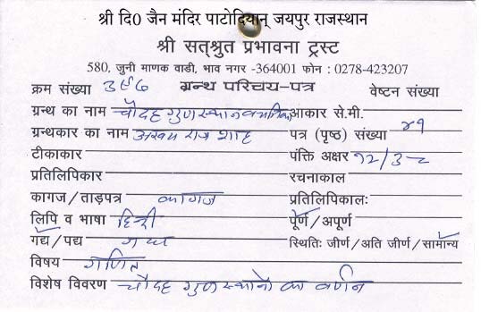 | Granth | : | Chaudah Gunsthan Vachanika |