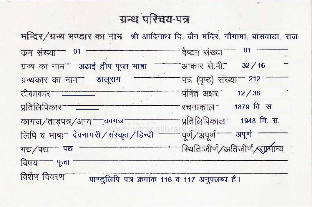 | Manuscripted By | : | Pandit Loonkaran |