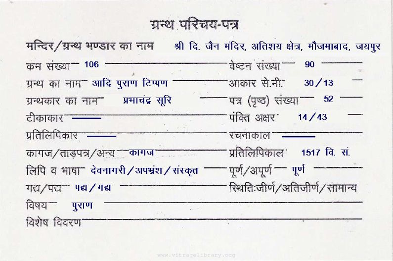 | Manuscript Year | : | 1615 Vi.Sa. |