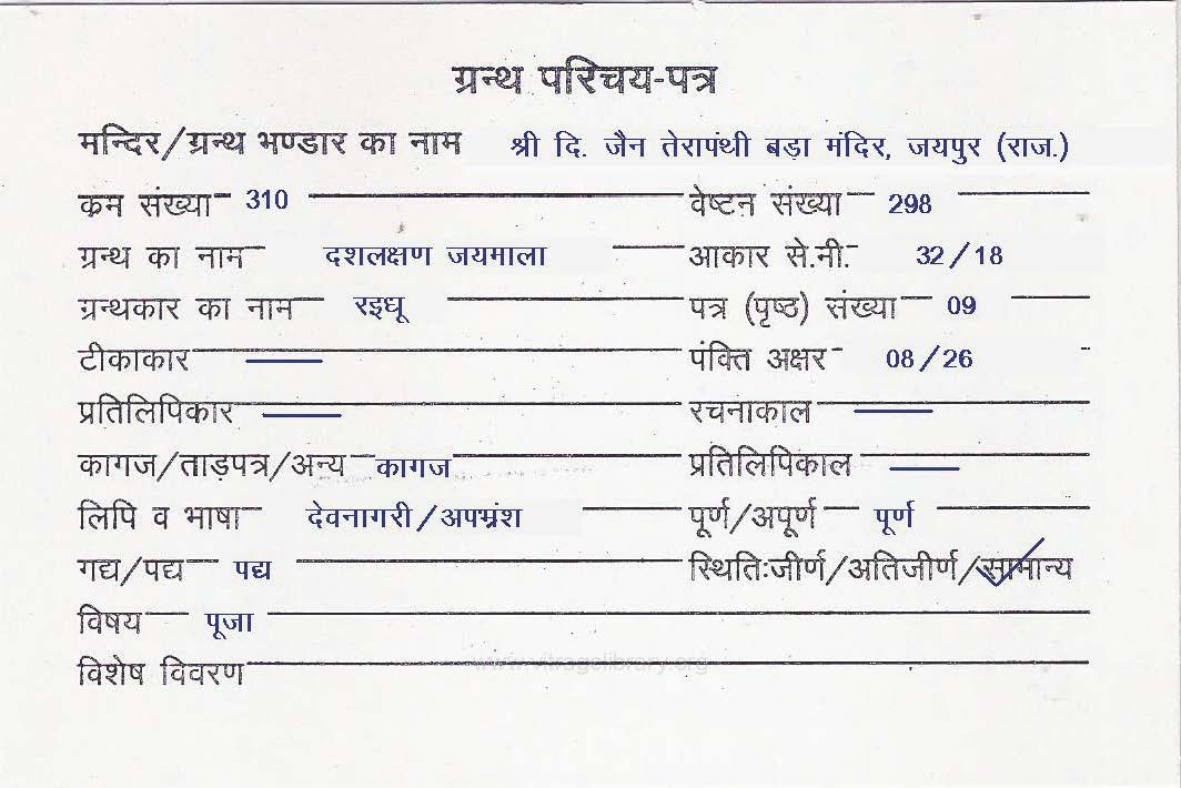 | Granth | : | Dashlakshan Jaymala 1 |