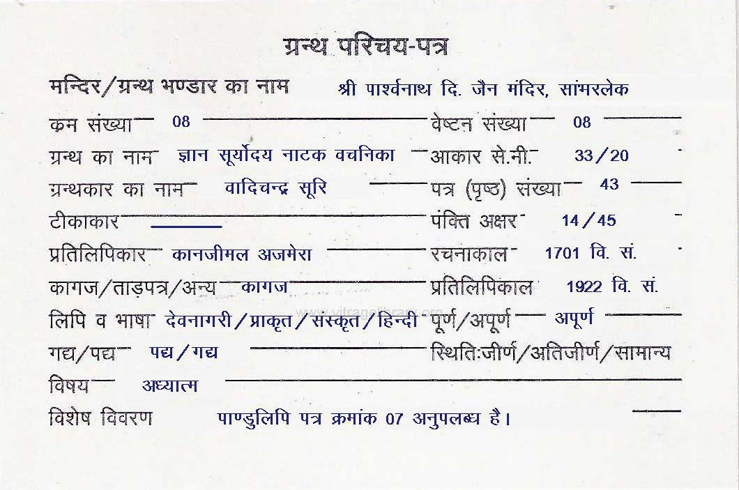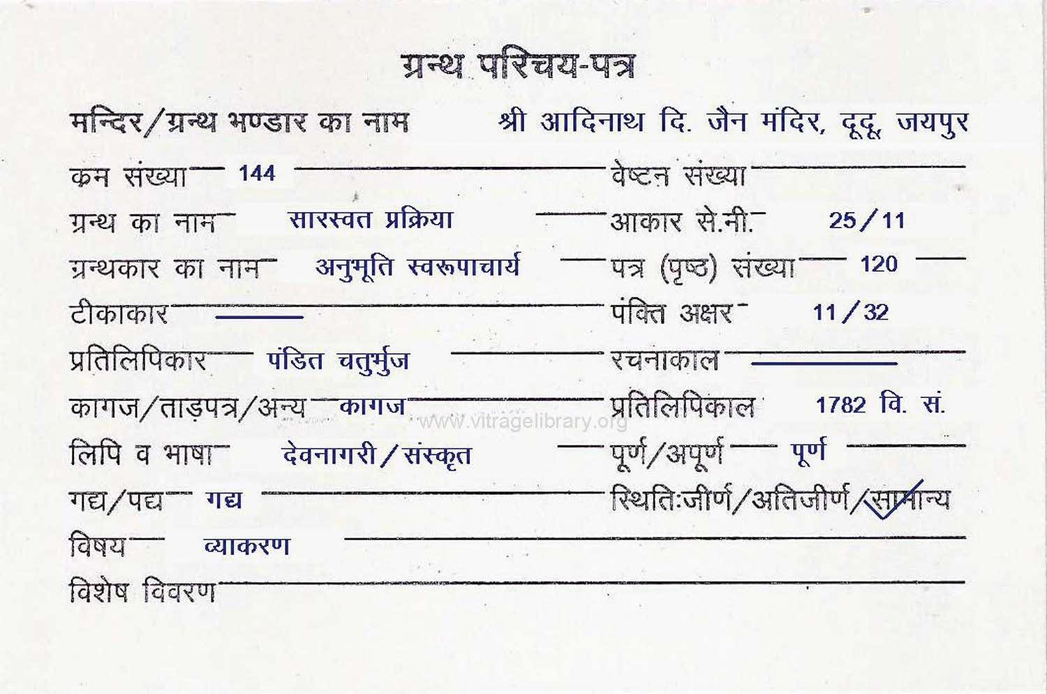 | Manuscript Year | : | 1587 Vikram Samvat |