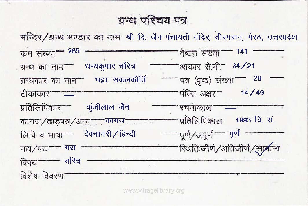 | Granth | : | Dhanya Kumar Charitra |