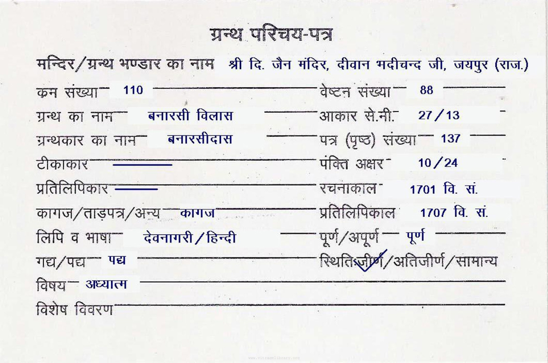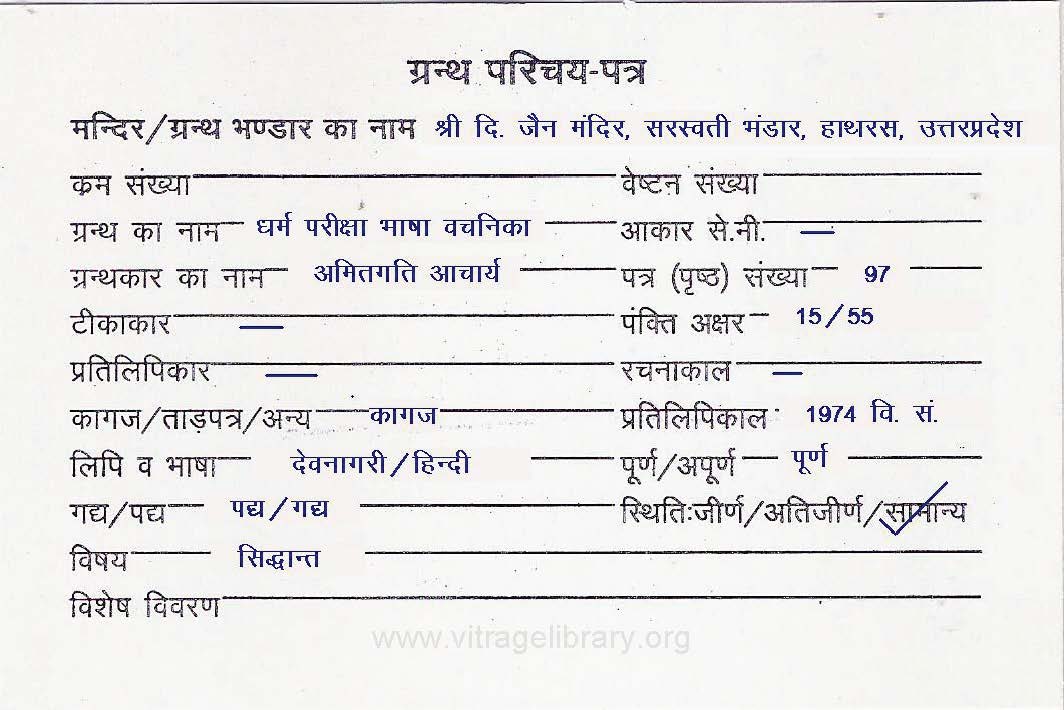 | Granth | : | Dharma Pariksha Bhasha Vachanika |