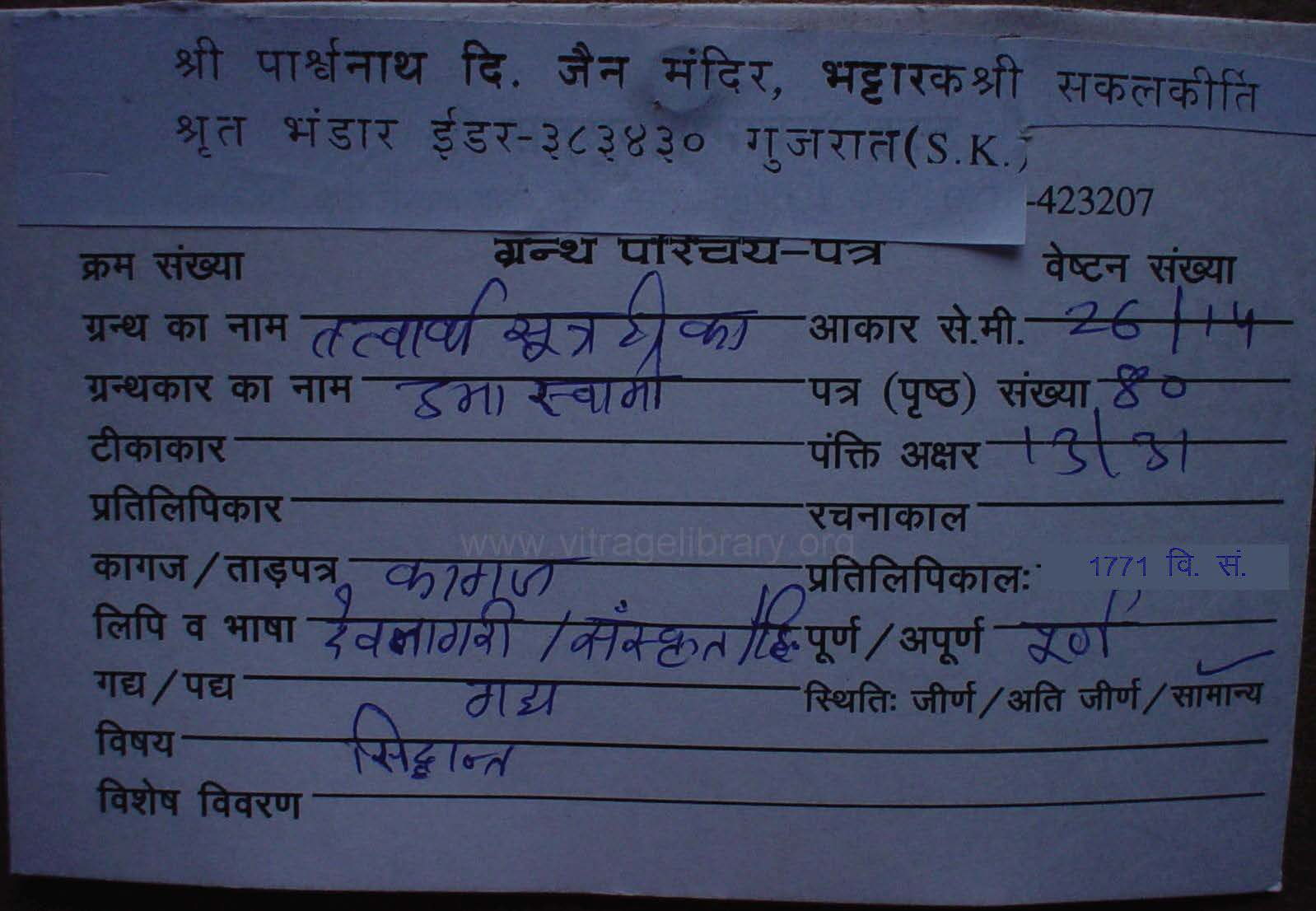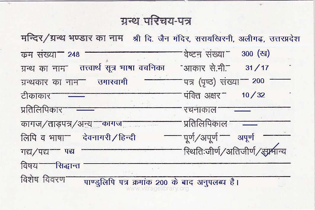 | Comments | : | पांडुलिपि के प्रारम्भ के 03 पत्र अनुपलब्ध है। |