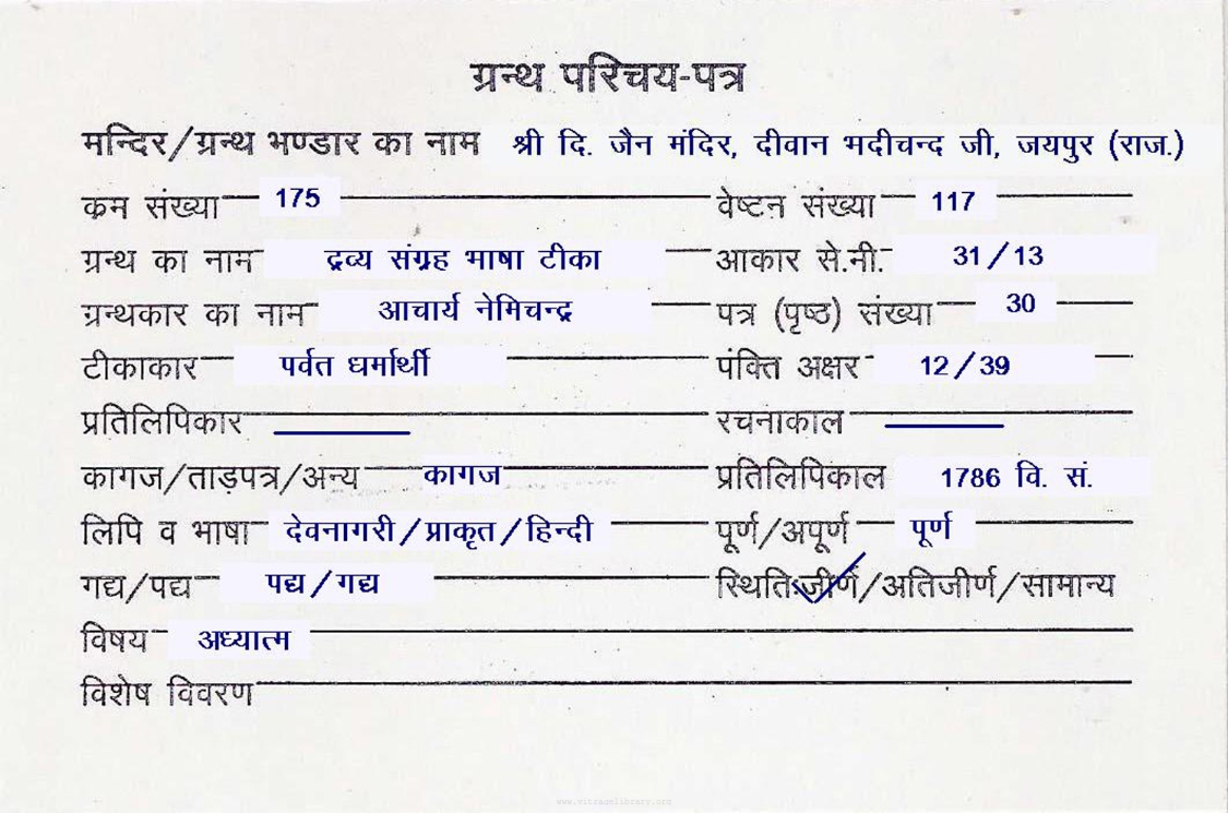| Granth | : | Dravya Sangrah Bhasha Teeka 3 |