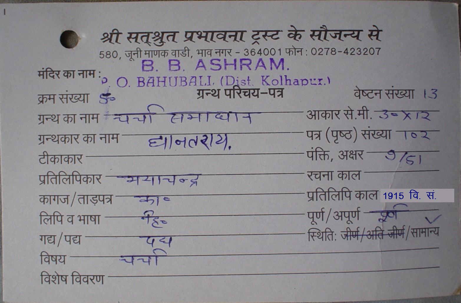 | Granth | : | Dravya Sangrah Sateek 1 |