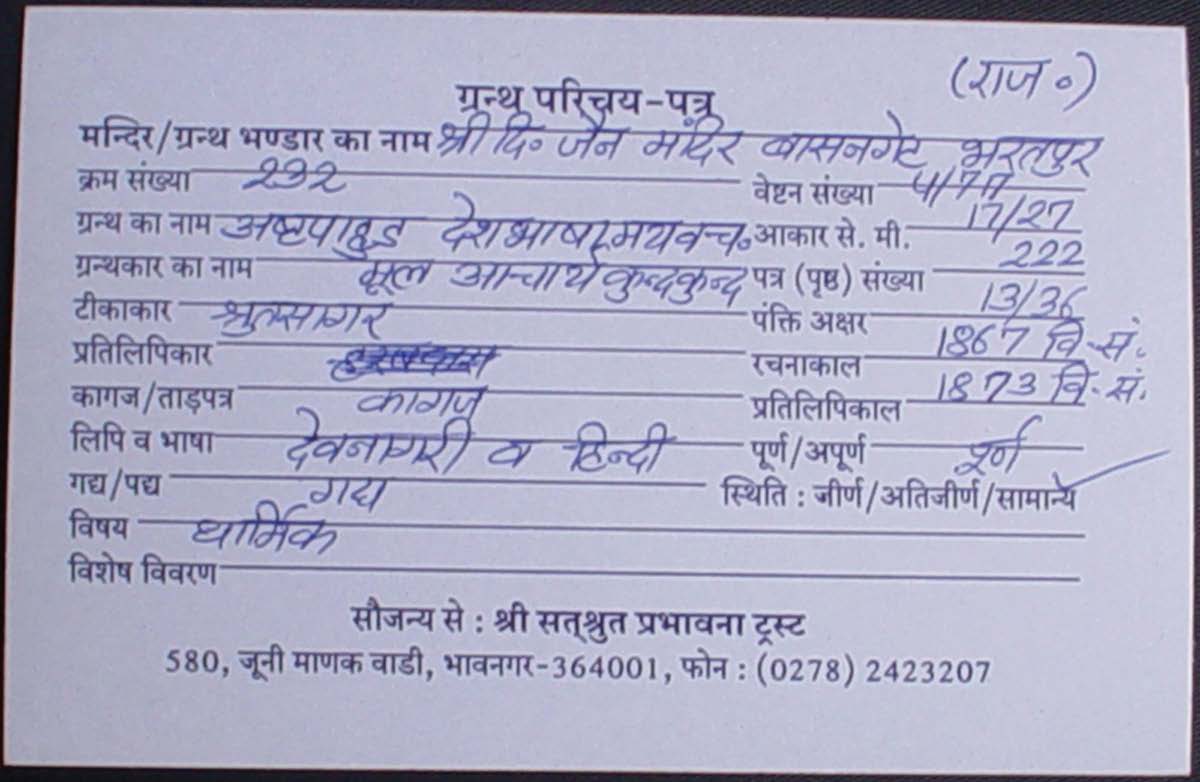 | Manuscripted By | : | Shree Sundarlal ji |