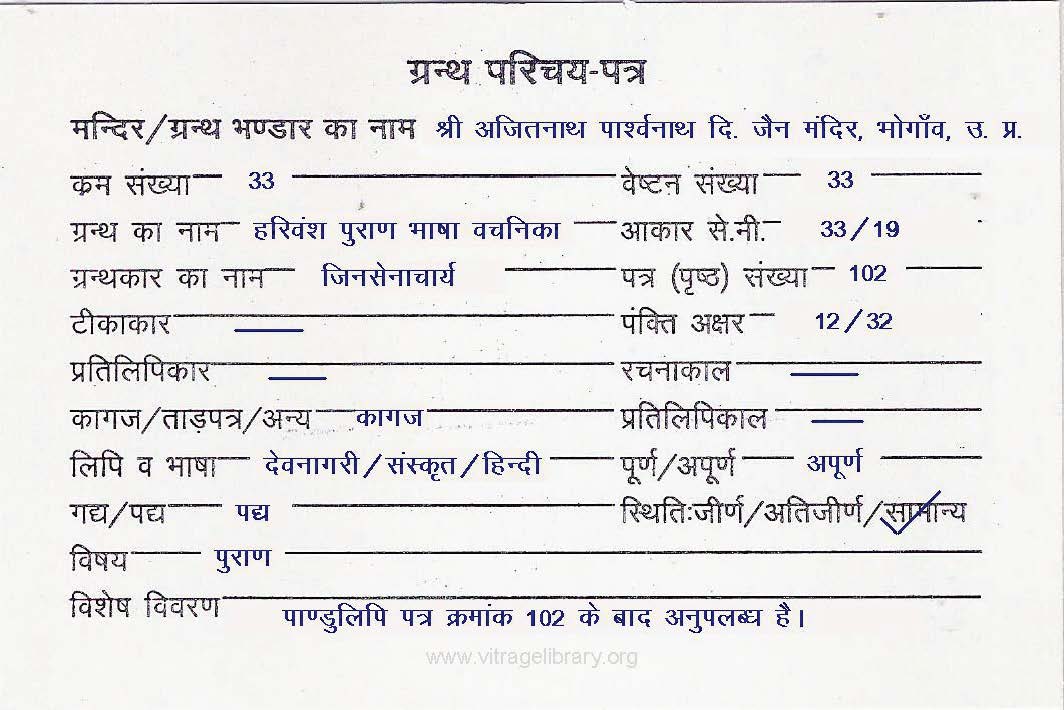 | Granth | : | Harivansh Puran Bhasha Vachanika |
