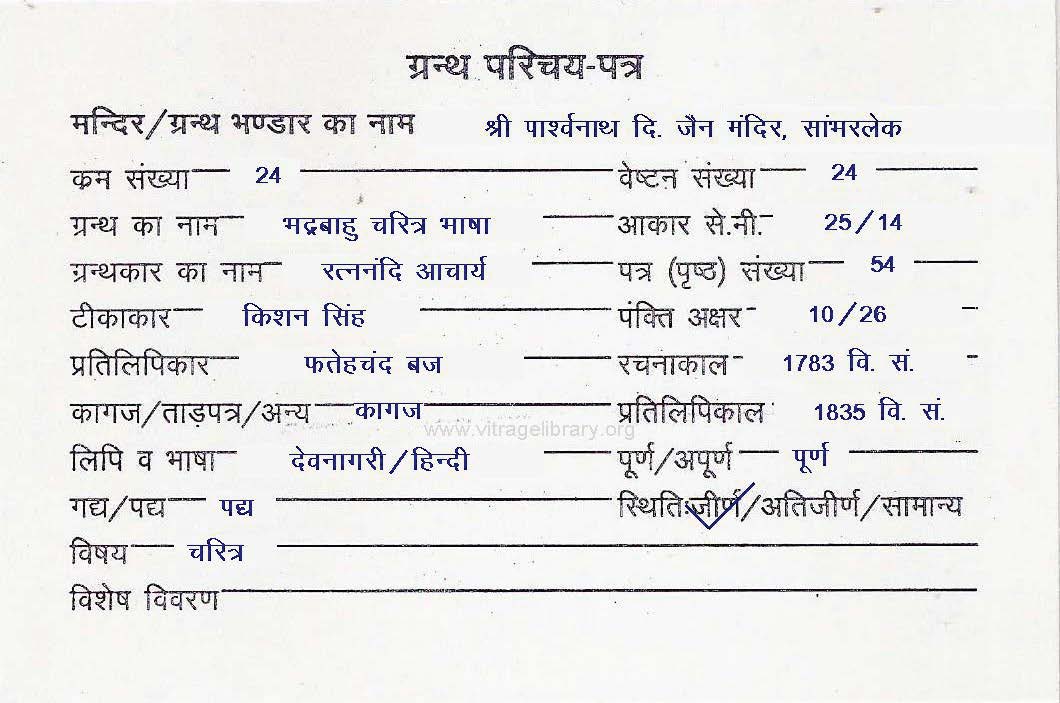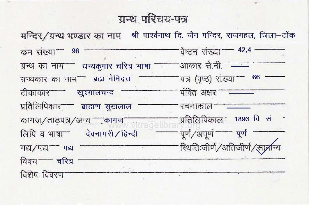| Manuscripted By | : | Pandit Sukhanand Ji |