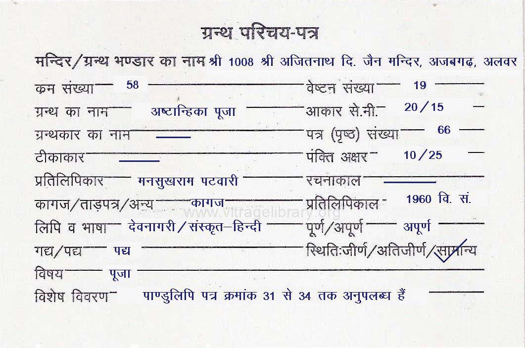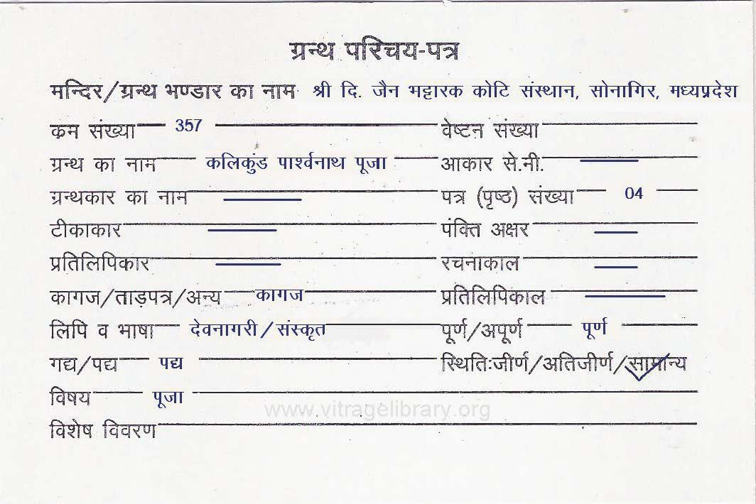 | Source | : | Shree Parshwanath Digambar Jain Mandir, Bhattarak Sakalkirti Shrut Bhandar, Idar (Guj.) |