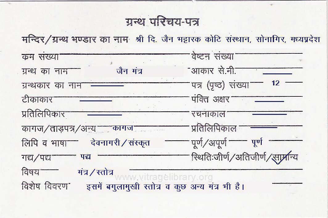 | Comments | : | This contains the Bagulāmukhī Stotra and some other mantras. |