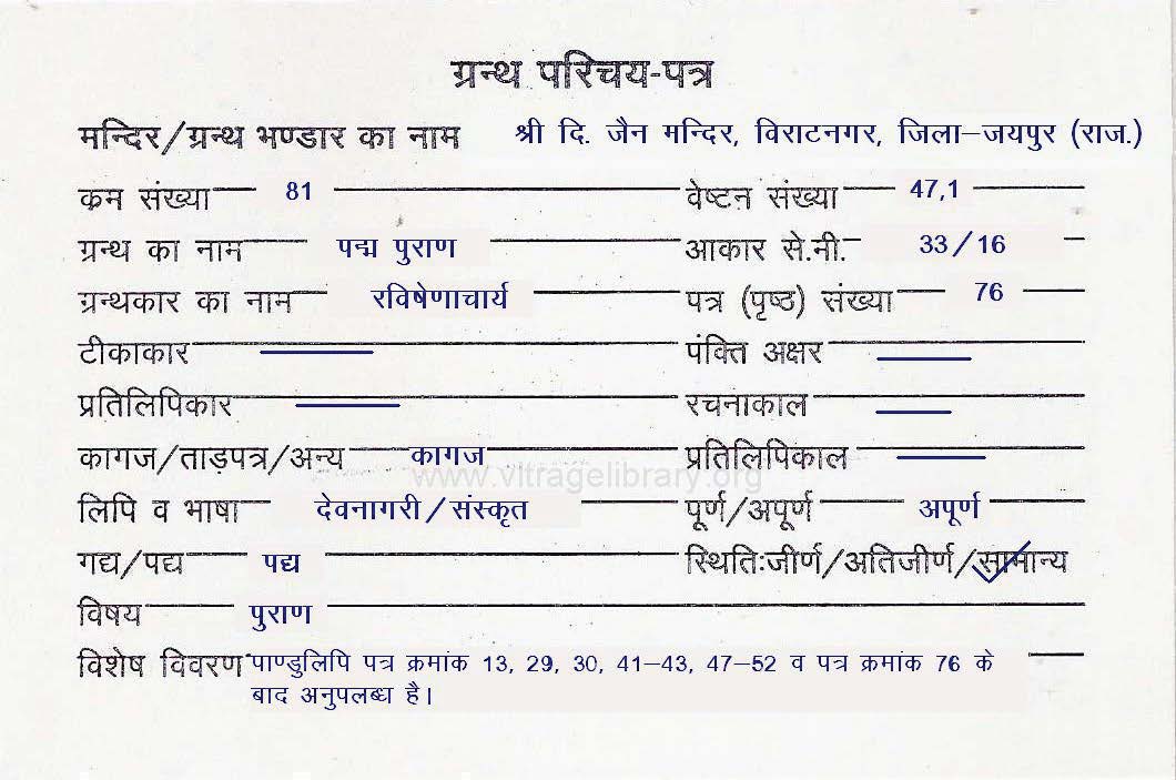 | Section/ Collection | : | Prathmanuyog Shastra |