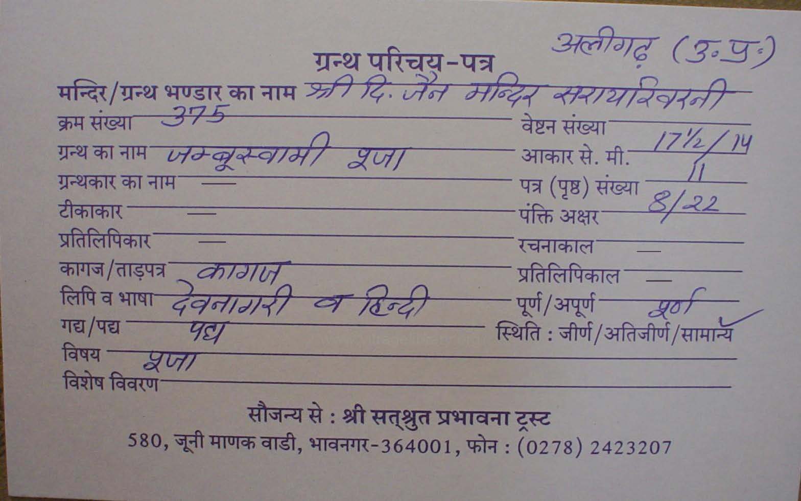 | Granth | : | Jambuswami Pooja |