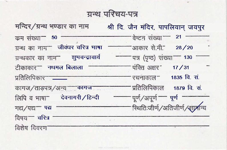 | Granth | : | Jivandhar Charitra Bhasha 2 |