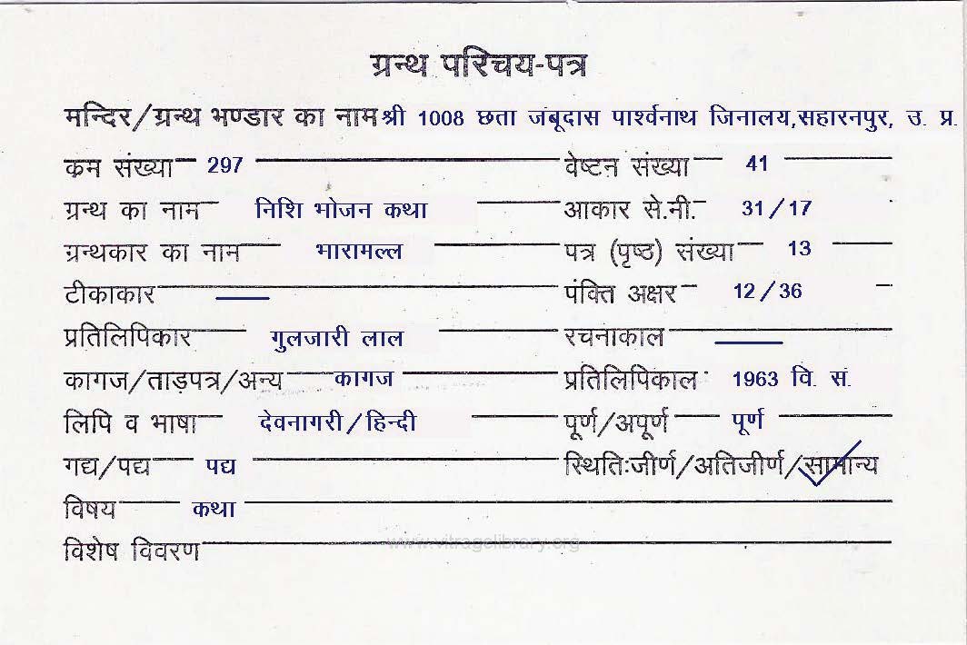 | Granth | : | karma Nirjara Vrat Katha and Panchendriya Vivad |