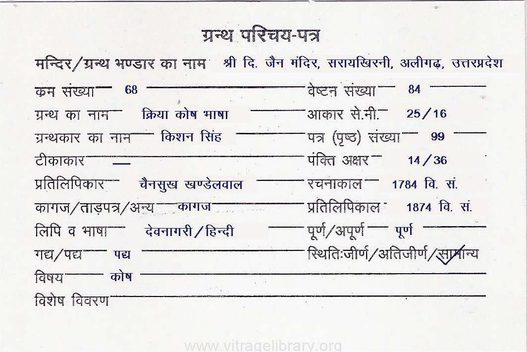| Granth | : | Kriya Kosh Bhasha |