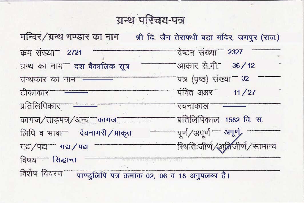 | Manuscripted By | : | Pandit Jaychand Ji |