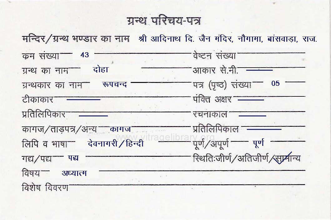 | Manuscripted By | : | Pandit Devkaran |