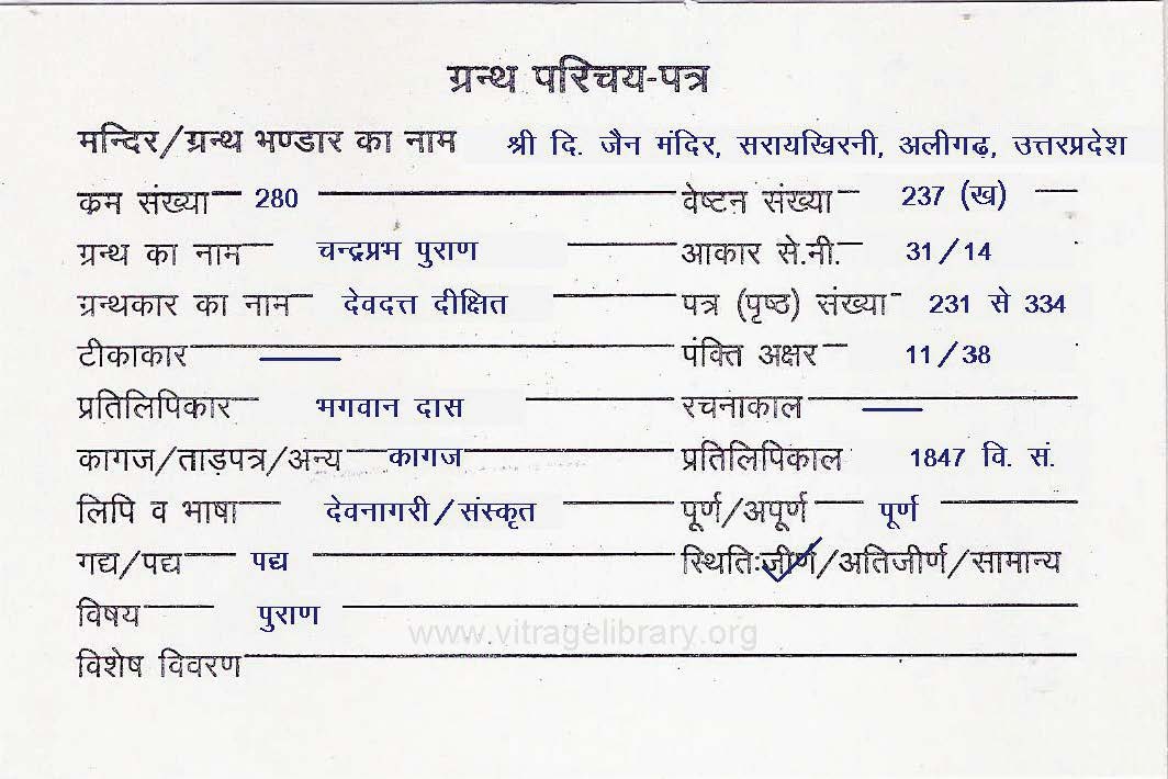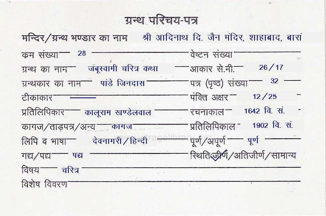 | Granth | : | Mallinath Puran Bhasha Vachanika |