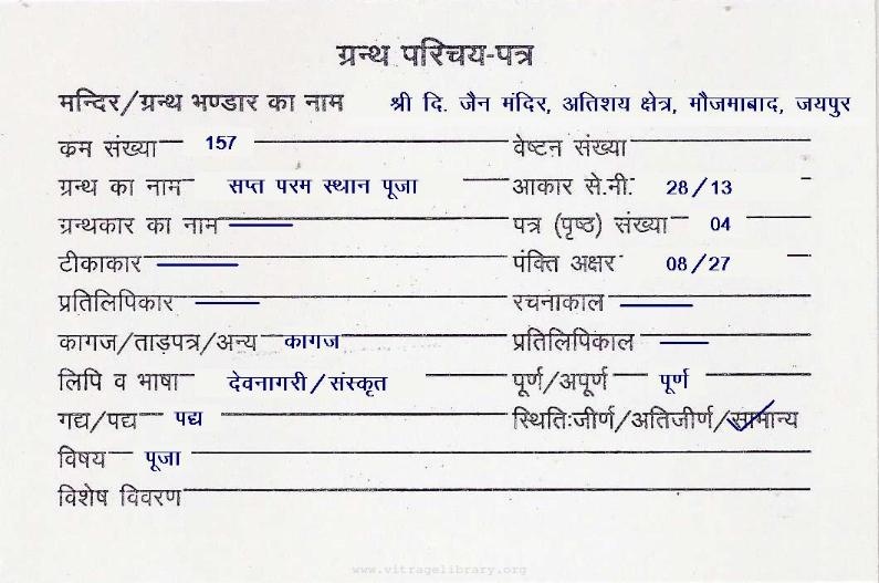| Source | : | Shree Digambar Jain Mandir, Papliyan, Jaipur (Raj.) |