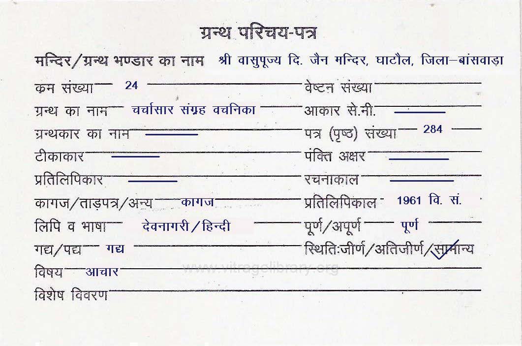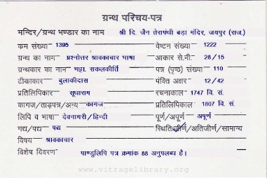 | Source | : | Shree Digambar Jain Saraswati Bhandar Naya Mandir, Hathras (U.P.) |