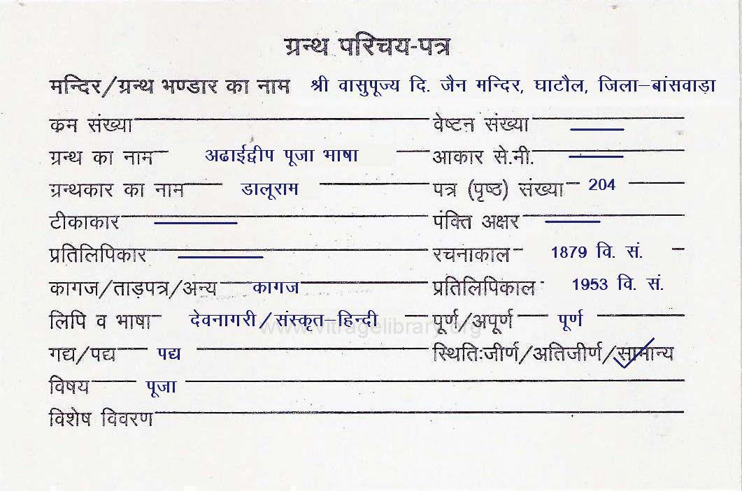 | Granth | : | Paasa Kevali |